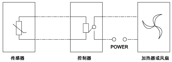 溫濕度控制器主要由傳感器、控制器、加熱器(或風扇等)三部分組成,其工作原理如下圖所示: