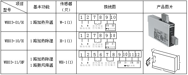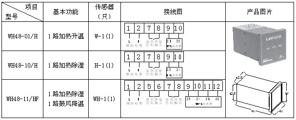 ●W-1為溫度傳感器,H-1為濕度傳感器,WH-1為溫濕度傳感器,控制器型號選定后已經(jīng)包括傳感器,無需另行選定;