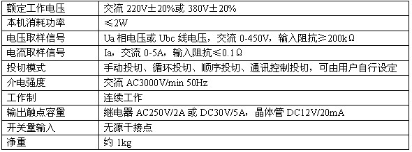 工作電源為AC220V,相電壓采樣,帶隔離的復(fù)合開關(guān)輸出