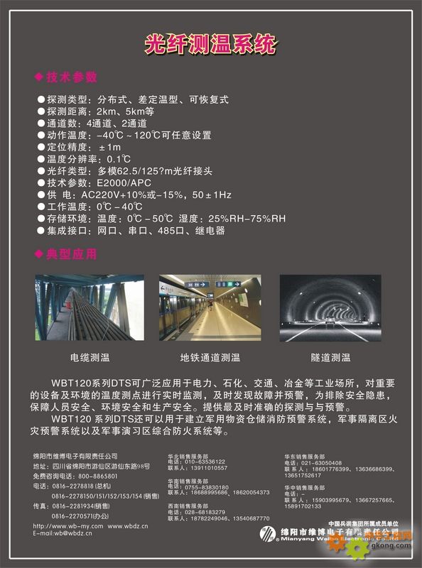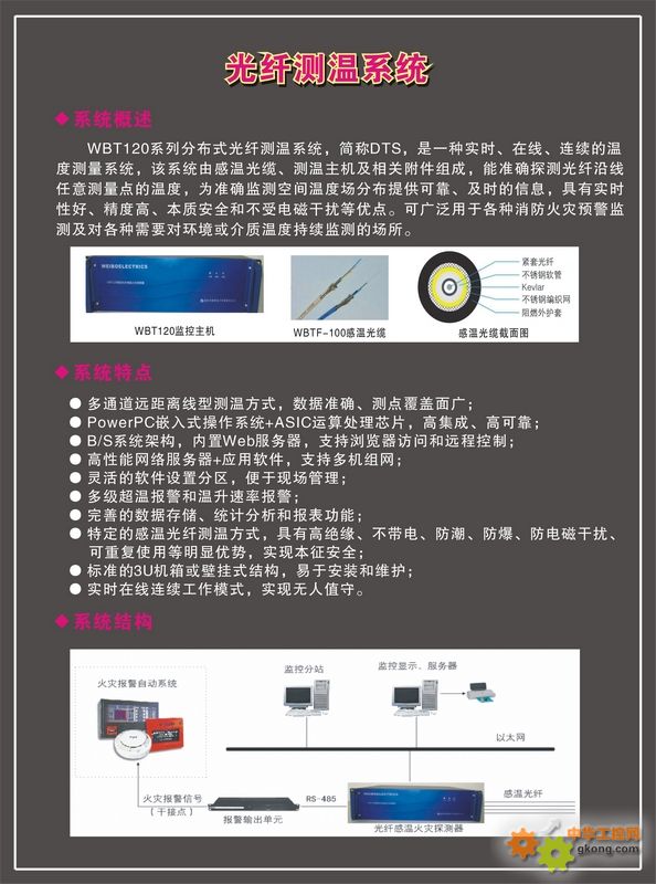 WBT120系列分布式光纖測溫系統(tǒng),簡稱DTS,是一種實時、在線、連續(xù)的溫度測量系統(tǒng),該系統(tǒng)由感溫光纜、測溫主機及相關(guān)附件組成。