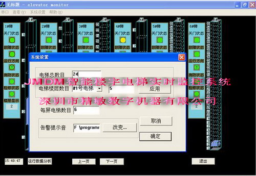 一、系統(tǒng)概要 深圳市精敏數(shù)字機(jī)器有限公司積累多年現(xiàn)場(chǎng)數(shù)據(jù)采集、智能工業(yè)控制、運(yùn)動(dòng)控制、 上位機(jī)監(jiān)控等方面的業(yè)內(nèi)經(jīng)驗(yàn),最新推出一款多功能樓宇電梯智能實(shí)時(shí)集中監(jiān)控系統(tǒng)。 JMDM 樓宇電梯智能實(shí)時(shí)監(jiān)控系統(tǒng)可對(duì)樓宇、小區(qū)內(nèi)的多臺(tái)電梯運(yùn)行狀態(tài)進(jìn)行實(shí) 時(shí)監(jiān)控,如電梯運(yùn)行方向、停靠樓層、開(kāi)關(guān)門(mén)、停止、告警、故障、檢修等運(yùn)行情況。 通過(guò)RS485網(wǎng)絡(luò)和JMDM工業(yè)級(jí)高可靠單片機(jī)控制器實(shí)時(shí)采集和實(shí)時(shí)傳送到電腦集中 監(jiān)控臺(tái),并以文字、動(dòng)畫(huà)形式實(shí)時(shí)逼真顯示多臺(tái)電梯同時(shí)多樓層上下運(yùn)行,運(yùn)行數(shù)據(jù)可 以智能曲線圖、運(yùn)行日志等方式顯示和存儲(chǔ)在集中監(jiān)控臺(tái)電腦上,還支持自定義語(yǔ)音播 報(bào)電梯告警或故障信息。電梯所有運(yùn)行狀態(tài)一覽無(wú)余,多臺(tái)電梯工作情況實(shí)時(shí)掌握,系 統(tǒng)操作簡(jiǎn)單方便,操作人員一用即會(huì)。 JMDM多功能智能電梯遠(yuǎn)程監(jiān)控系統(tǒng)功能強(qiáng)大、性能穩(wěn)定、組網(wǎng)經(jīng)濟(jì)、施工簡(jiǎn)單、 界面直觀、使用便捷,可大幅提高電梯管理工作效率,實(shí)時(shí)掌控所有電梯工作狀態(tài),提 前響應(yīng),將故障、風(fēng)險(xiǎn)和損失降到最低,大大節(jié)約人力、物力、財(cái)力,是各種大中型物 業(yè)管理公司、商業(yè)樓宇、住宅小區(qū)、企事業(yè)單位機(jī)關(guān)等單位樓宇電梯的最佳監(jiān)控系統(tǒng)方 案。 二、系統(tǒng)介紹 JMDM樓宇電梯智能實(shí)時(shí)監(jiān)控系統(tǒng)由三部分組成:電腦(集中監(jiān)控臺(tái))、電梯運(yùn)行數(shù)據(jù) 采集單元、供電系統(tǒng)。 2.1 電腦(集中監(jiān)控臺(tái)) JMDM-RS485網(wǎng)絡(luò)對(duì)N臺(tái)電梯運(yùn)行數(shù)據(jù)進(jìn)行過(guò)程數(shù)據(jù)采集,實(shí)時(shí)讀取電梯的運(yùn)行方向、 ?繕菍、開(kāi)關(guān)門(mén)、停止、故障、檢修等信息,以動(dòng)畫(huà)、數(shù)據(jù)報(bào)表、狀態(tài)運(yùn)行日志等方 式實(shí)時(shí)顯示或?qū)崟r(shí)存儲(chǔ)在電腦上,值班人員可以很直觀便捷地看到各個(gè)電梯的實(shí)時(shí)運(yùn)行 狀態(tài),可以通過(guò)計(jì)算機(jī)的外置音響把故障電梯的故障信息以語(yǔ)音的方式播放。 2.2 電梯運(yùn)行數(shù)據(jù)采集單元 電梯運(yùn)行數(shù)據(jù)采集單元由四部分組成:JMDM工業(yè)級(jí)高可靠控制器、RS485接入模塊、 DC24V電源、雙絞線(或網(wǎng)線)。安裝位置可與電梯自身控制單元安裝在一起,也可以 獨(dú)立安裝在一個(gè)采集柜內(nèi)。JMDM 工業(yè)級(jí)高可靠控制器可以實(shí)時(shí)采集電梯的各種運(yùn)行 過(guò)程信息:包括運(yùn)行狀態(tài)、故障信息等數(shù)據(jù),經(jīng)過(guò)RS485接入模塊接入RS485網(wǎng)絡(luò), 電腦監(jiān)控臺(tái)也通過(guò)RS485 接入模塊接入RS485 網(wǎng)絡(luò),RS485 網(wǎng)絡(luò)便可把過(guò)程數(shù)據(jù)傳 送到主控上位機(jī):電腦集中監(jiān)控臺(tái),實(shí)現(xiàn)對(duì)多臺(tái)電梯的運(yùn)行狀態(tài)信息進(jìn)行實(shí)時(shí)采集和監(jiān) 控。 2.3 供電系統(tǒng) 供電系統(tǒng)是為電梯運(yùn)行數(shù)據(jù)采集模塊進(jìn)行供電,DC24V 電源可由電梯系統(tǒng)提供,也可 獨(dú)立配置直流開(kāi)關(guān)電源。 三、系統(tǒng)功能特點(diǎn) 1、上位機(jī)電腦監(jiān)控畫(huà)面動(dòng)畫(huà)顯示各個(gè)電梯的運(yùn)行狀態(tài):電梯運(yùn)行方向、停靠樓層、開(kāi) 關(guān)門(mén)、停止等運(yùn)行情況; 2、狀態(tài)圖形化顯示每部電梯的當(dāng)前運(yùn)行樓層和方向; 3、文字+圖形化顯示電梯狀態(tài)(告警、故障、檢修、消防等); 4、具備智能報(bào)警系統(tǒng),并獨(dú)立存儲(chǔ)報(bào)警數(shù)據(jù)記錄日志,可以?xún)?yōu)先并自動(dòng)彈出電梯故障 畫(huà)面,并帶確認(rèn)功能; 5、運(yùn)行數(shù)據(jù)記錄(包括電梯運(yùn)行時(shí)間、各個(gè)樓層停留次數(shù)匯總、平均故障頻率等數(shù)據(jù)) 統(tǒng)計(jì)以智能曲線顯示和打印,可方便電梯使用和管理者對(duì)電梯運(yùn)行效率進(jìn)行評(píng)估和調(diào) 整; 6、人性化自定義語(yǔ)音播報(bào)故障,可以根據(jù)實(shí)際情況自行錄制語(yǔ)音播報(bào)音頻文件; 7、個(gè)性化功能及畫(huà)面制作,可以根據(jù)用戶(hù)需求制作不同風(fēng)格的監(jiān)視畫(huà)面,同時(shí)也可以 根據(jù)用戶(hù)要求增加監(jiān)控系統(tǒng)的功能。 8、支持與其它系統(tǒng)對(duì)接,需要其它系統(tǒng)提供消息響應(yīng)機(jī)制、消息命令格式等信息。