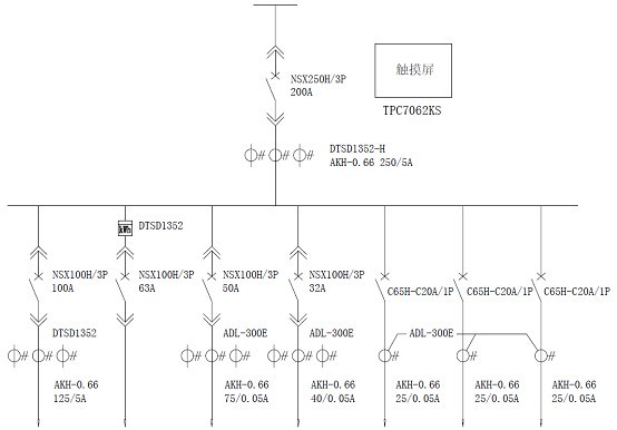 電源進(jìn)線監(jiān)控由顯示觸摸屏與DTSD1352-H組成。