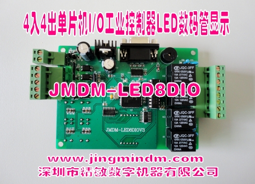 JMDM-LED8DIO是深圳市精敏數(shù)字機(jī)器有限公司自主研發(fā)的一款具有四路光電隔離數(shù)字量信號輸入,四路繼電器開關(guān)量輸出,四個手動按鍵調(diào)節(jié),并帶有數(shù)碼管顯示和蜂鳴器報警的高可靠穩(wěn)定性的工業(yè)單片機(jī)控制器,也叫可顯示和調(diào)整參數(shù)的8點(diǎn)單片機(jī)I/O工控板。