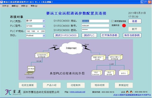 該軟件的升級,未注冊版本提供了部分PLC產品的配置參數(shù),可以用來連接到賽遠或者合作伙伴的遠程演示系統(tǒng),通過SY-RCS連接現(xiàn)場的SY-RSCM300系統(tǒng),穩(wěn)定又方便。