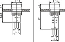 3、AD103-16C(S)為插腳接線方式,其中AD103-16C總長度約為46.5(不包括插腳);AD103-16CS為超短型,總長度約為34(不包括插腳)。