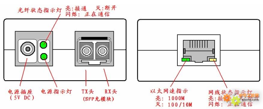 波仕微型以太網(wǎng)光纖收發(fā)器使用時(shí)光纖發(fā)送頭通過光纖接對(duì)方的光纖接收頭。注意保持光纖轉(zhuǎn)換器的光纖座、光纖頭的清潔,如果不連接時(shí)請(qǐng)用相配套的橡皮塞子蓋住。 OPET1G的供電為5V直流,請(qǐng)使用產(chǎn)品配套帶的電源。供電電壓為直流5V±0.5V,產(chǎn)品功耗小于3W。電源插座的旁邊帶LED電源指示燈,當(dāng)外插電源時(shí)燈會(huì)一直亮著,另外一個(gè)燈指示光口狀態(tài)(圖2)。OPET1G產(chǎn)品的RJ45座自帶的燈會(huì)顯示網(wǎng)絡(luò)通信狀態(tài)(圖3)。