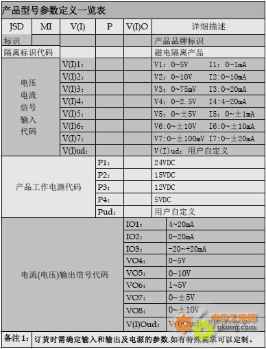 隔離放大器模塊型號(hào)舉例: