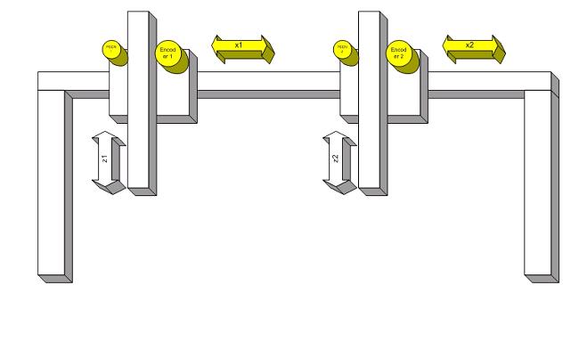 圖1為一臺(tái)起重機(jī)的示意圖。起重機(jī)是用于在不同工位之間傳輸工件的裝置。在起重機(jī)工作時(shí),需要準(zhǔn)確地知道工件被提升或落下時(shí)小車在X軸的位置,以避免工件在垂直運(yùn)動(dòng)時(shí)對(duì)人體造成傷害。而起重機(jī)垂直方向的運(yùn)動(dòng)是由一個(gè)第三方提供的NC控制器來(lái)控制的。PSS通過(guò)安全限位開(kāi)關(guān)(如PSEN系列)來(lái)監(jiān)測(cè)Z軸的位置運(yùn)動(dòng),并通過(guò)絕對(duì)編碼器來(lái)獲取x軸的位置信號(hào),這些都是與NC控制器獨(dú)立的。PSS只有在起重機(jī)的Z軸沒(méi)有過(guò)限(即安全限位開(kāi)關(guān)未被觸發(fā))以及絕對(duì)值編碼器正確地記錄了水平位置的情況下起重機(jī)才能動(dòng)作。