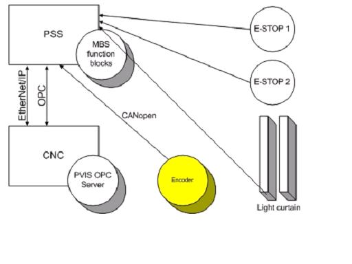 系統(tǒng)的控制器使用的是緊湊型的可編程安全系統(tǒng)PSS 3047-3 ETH-2 CANopen作為控制器。使用Pilz開(kāi)發(fā)的CANopen軟件功能包ST SB CANopen Master,PSS 3047可以作為CAN總線的主站。在標(biāo)準(zhǔn)部分使用功能塊FB090執(zhí)行編碼器的初始化,F(xiàn)B091和FB092進(jìn)行兩個(gè)編碼器信號(hào)的處理。在安全部分,PSS3047通過(guò)FB091和FB092處理之后的編碼器數(shù)據(jù),檢測(cè)絕對(duì)值編碼器信號(hào)的外部偏移和內(nèi)部偏移。外部偏移指的是當(dāng)前值與參考點(diǎn)之間的偏移,而內(nèi)部偏移指的兩個(gè)通道數(shù)據(jù)之間的偏移。通過(guò)安全功能塊SB225進(jìn)行控制,當(dāng)偏移量超過(guò)設(shè)定值時(shí),將可靠地切斷相應(yīng)的輸出。