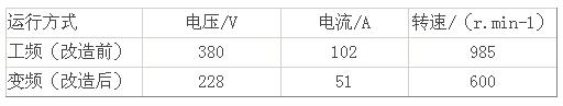 表1. 改造前后渣漿泵電動機的運行參數(shù)