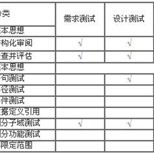 測(cè)試方法不僅要保證測(cè)試事例具有發(fā)現(xiàn)缺陷的高可移植性,而且還要保證測(cè)試事例設(shè)計(jì)的經(jīng)濟(jì)有效。因此,在實(shí)際測(cè)試工作中,將嵌入式系統(tǒng)的測(cè)試方法 分類如下:根據(jù)測(cè)試是否動(dòng)態(tài)運(yùn)行被測(cè)程序分為靜態(tài)測(cè)試方法和動(dòng)態(tài)測(cè)試方法;根據(jù)測(cè)試階段分為需求測(cè)試方法、設(shè)計(jì)測(cè)試方法、編碼測(cè)試(單元測(cè)試、集成測(cè)試) 方法及系統(tǒng)測(cè)試方法;根據(jù)測(cè)試目的分為功能測(cè)試、性能測(cè)試、可靠性測(cè)試(容錯(cuò)性、可恢復(fù)性、成熟度測(cè)試*及信息安全保護(hù)等測(cè)試。參看表1嵌入式軟件測(cè)試方 法對(duì)照。其中“√”代表相關(guān)性。所有這些方法的具體定義這里不一一介紹。由于不同的嵌入式系統(tǒng)面向的應(yīng)用不同,測(cè)試方法的側(cè)重也很不相同。本文后面將對(duì)一 個(gè)具體的便攜式信息處理嵌入式系統(tǒng)(PDA、便攜式翰林電子書)的系統(tǒng)測(cè)試方法詳細(xì)說明。