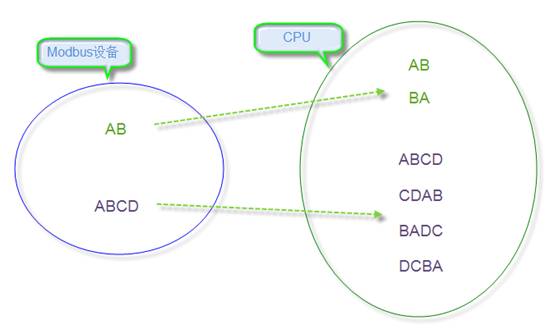 16位以上的數(shù)據(jù)是由多個(gè)字節(jié)組成的,獲取的設(shè)備響應(yīng)的數(shù)據(jù)是包含了這些字節(jié),如果不能明確地知道數(shù)據(jù)的組成字節(jié)順序,那么就不能正確的解析數(shù)據(jù)。非標(biāo)準(zhǔn)的Moubus設(shè)備內(nèi)存中所存儲(chǔ)的數(shù)據(jù)字節(jié)順序會(huì)有變化,不一定符合一般從高到低排列的習(xí)慣。紫金橋的Modbus-RTU擴(kuò)展驅(qū)動(dòng),可以很容易解決這個(gè)問(wèn)題。它支持16位和32位數(shù)據(jù)的字節(jié)順序轉(zhuǎn)換解析。