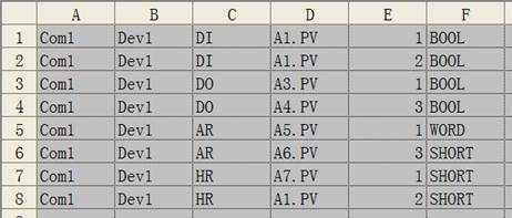 通過Excel,結(jié)合紫金橋軟件的點(diǎn)組態(tài)界面的導(dǎo)出到Excel編輯的功能,可以快速的生成此表格。然后使用批量導(dǎo)入功能,就可以迅速的創(chuàng)建大量的寄存器。