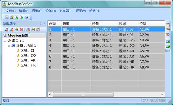 可以使用紫金橋Modbus服務(wù)器設(shè)置程序的右側(cè)的 、 或 來增加、修改或刪除寄存器。