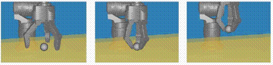 仿真的結(jié)果表明,用力的控制,機(jī)器人能夠抓住一個(gè)物體,即使抓取路徑和接觸位置不完全一樣。例如,一個(gè)高爾夫球的抓取可以用來(lái)抓取壘球。利用力的控制,即使在物體的形狀的不確定,仍然可以成功地編寫抓取的腳本。利用力的控制,抓取的路徑和姿勢(shì)很容易編輯, 從一個(gè)相似物體的抓取修改成對(duì)一個(gè)新的物體的抓取。減少創(chuàng)作抓取腳本的努力。例如,例如一個(gè)球的抓取很容易被修用于抓取和拿起一個(gè)杯子。