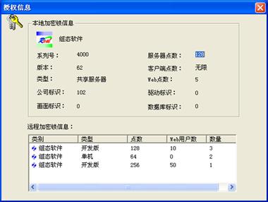 該對(duì)話框的下半部分顯示了遠(yuǎn)程加密鎖信息,分別顯示所提供的每種類型的授權(quán)。
