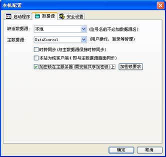 在主數(shù)據(jù)源處選擇新建的數(shù)據(jù)源(即授權(quán)服務(wù)器),勾選“加密鎖在主服務(wù)器上”,點(diǎn)擊“加密鎖要求”按鈕,彈出設(shè)置對(duì)話框,如下圖所示: