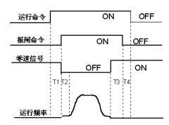 最佳的控制時序如圖2所示,變頻器接收到運行命令后,先進(jìn)入零速運行過程,延時T1,保證電機勵磁達(dá)到穩(wěn)態(tài)后打開報閘,同時變頻器開始運行啟動速度的啟動速度保持時間T2后是高速、低速到零速,零速運行T3后,在保證慣性影響為零的情況下,關(guān)閉報閘,由于報閘抱緊需要一定時間,因此必須延遲T4后撤消運行命令。按照此時序,可以保證啟動和停車均有理想的舒適感。在艾默生TD3100變頻器中,T1由F7.00設(shè)定,T2由F3.01設(shè)定,T3由F7.01設(shè)定,T4由控制決定,如果控制器延遲時間不夠,TD3100變頻器將自動延長命令保持時間。