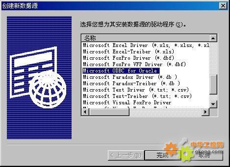 選擇相關驅動程序,如“Microsoft ODBC for Oracle”