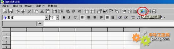 在紫金橋組態(tài)軟件開發(fā)界面的窗口中,創(chuàng)建一個自由報表對象,雙擊進入其屬性設置,點擊“關系數(shù)據(jù)庫聯(lián)結設置”: