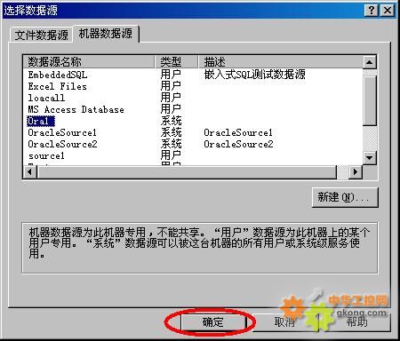 確定后,名為Ora1的數(shù)據(jù)源就建立完畢: