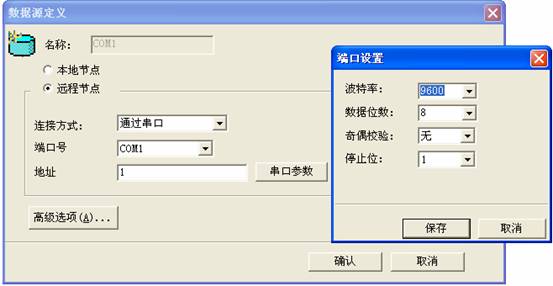 在對(duì)話(huà)框中輸入串口數(shù)據(jù)源名稱(chēng)并確認(rèn),將出現(xiàn)數(shù)據(jù)源配置框。如下所示: