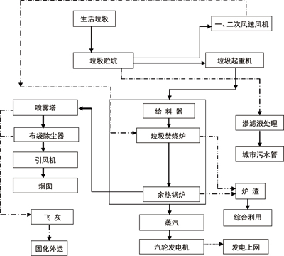 圖1 垃圾焚燒發(fā)電廠工藝流程圖