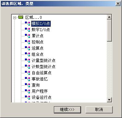 選擇“模擬I/O點”并點擊“繼續(xù)”按鈕,會彈出如下圖所示的對話框: