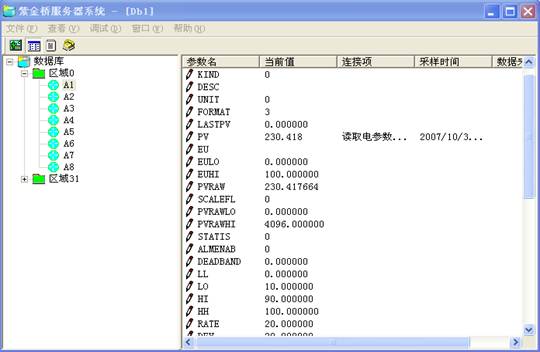 如果您在驅(qū)動程序中看到采集運行正常那么請您單擊“數(shù)據(jù)庫”,顯示實時數(shù)據(jù)庫的運行界面。