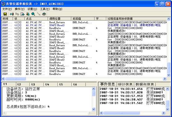 單擊“青智儀器單相儀表”,可以看到驅(qū)動程序的運行情況。如果您采集的數(shù)據(jù)出現(xiàn)問題可以根據(jù)此處提示信息進行驅(qū)動的調(diào)試及相應修改。
