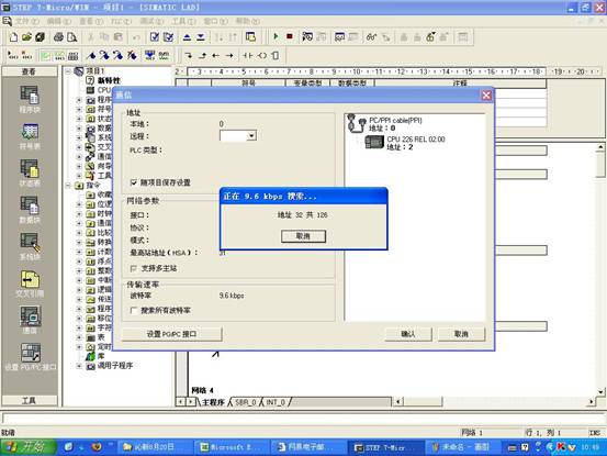 點(diǎn)擊左側(cè)導(dǎo)航欄里的“通信”圖標(biāo)進(jìn)入通信參數(shù)設(shè)置界面。雙擊“雙擊刷新”圖標(biāo)找到CPU 226并確認(rèn),本地PLC的地址設(shè)為2,網(wǎng)絡(luò)參數(shù)和傳輸速率按缺省設(shè)定,完成通信參數(shù)的設(shè)定。如圖2所示