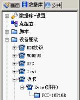 隨后運(yùn)行紫金橋開發(fā)系統(tǒng),展開“數(shù)據(jù)庫”選項(xiàng)卡,找到“設(shè)備驅(qū)動-〉板卡-〉Evoc( 研祥 ) ”驅(qū)動,如下圖所示: