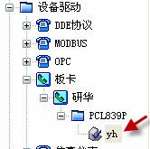 首先定義設(shè)備在,板卡類(lèi)分支找到 PCL839P ,添加一個(gè)設(shè)備命名為 yh ;