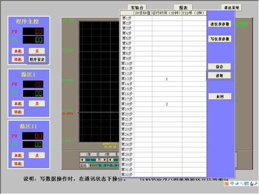 圖2上潤通訊截圖 有些用戶在使用儀表時需要反復使用幾張工藝參數(shù)表,那么我還可以把這些工藝參數(shù)表存到電腦里,在需要時調出來傳送到儀表中即可。用紫金橋軟件很容易實現(xiàn)。需要注意的地方是當計算機與島電通訊速度為38400時,頁面刷新的速率可選1秒。最后還有的客戶希望限制軟件的使用時間,這點我們也很容實現(xiàn)了。