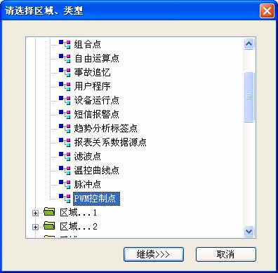 打開工程,把導(dǎo)航器切換到”數(shù)據(jù)庫”頁,進(jìn)入“點組態(tài)”,并且打開點組態(tài)編輯器,在新建數(shù)據(jù)點時選擇“PWM控制點”。
