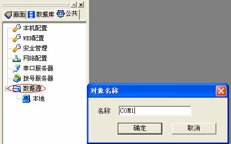 在對(duì)話框中輸入串口數(shù)據(jù)源名稱并確認(rèn),將出現(xiàn)數(shù)據(jù)源配置框。如下所示: