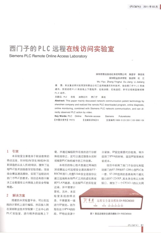 西門(mén)子的PLC遠(yuǎn)程在線訪問(wèn)實(shí)驗(yàn)室,采用賽遠(yuǎn)領(lǐng)先的工業(yè)通訊技術(shù),聯(lián)合深圳職業(yè)技術(shù)學(xué)院,共同組建了遠(yuǎn)程在線PLC實(shí)驗(yàn)室,通過(guò)實(shí)驗(yàn)室,學(xué)生可以在任何能夠上網(wǎng)的場(chǎng)合進(jìn)行PLC的實(shí)訓(xùn)訓(xùn)練,系統(tǒng)運(yùn)行穩(wěn)定、安全,技術(shù)領(lǐng)先,是響應(yīng)政府節(jié)能環(huán)保之倡導(dǎo),為提供便捷的學(xué)習(xí)通道而搭建。