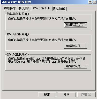 在“默認(rèn)配置權(quán)限”欄中,選擇“編輯默認(rèn)值”按鈕。在彈出的對話框中選擇“Everyone”用戶,并將其“訪問類型”設(shè)置為“完全控制”。