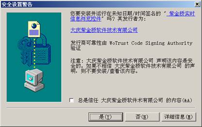 同時(shí)請(qǐng)檢查您的計(jì)算機(jī)的日期,如果日期和當(dāng)前日期差別太大,有可能超出了紫金橋證書的有效范圍,仍然造成無(wú)法加載相應(yīng)的控件。