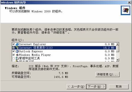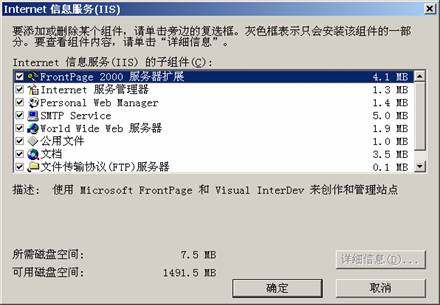 選擇Internet信息服務(wù)(IIS)項(xiàng),點(diǎn)擊“詳細(xì)信息”按鈕,會(huì)彈出下圖所示的選擇對(duì)話框: