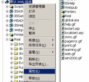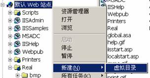 在“默認(rèn)Web站點(diǎn)”下找到在紫金橋Web設(shè)置中創(chuàng)建的虛擬目錄,比如“real”(請(qǐng)注意創(chuàng)建該目錄是在工程運(yùn)行后進(jìn)行的,在這之前必需先運(yùn)行工程)。如果沒(méi)有找到相應(yīng)的虛擬目錄,這說(shuō)明該虛擬目錄沒(méi)有在IIS中成功的創(chuàng)建。可以使用如下的方法手工創(chuàng)建虛擬目錄。