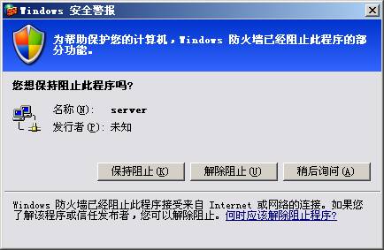 如果您機(jī)器上安裝有瑞星或其他殺毒軟件或防火墻,可能在運(yùn)行時(shí)會(huì)有警告提示,下圖是防火墻的安全提示: