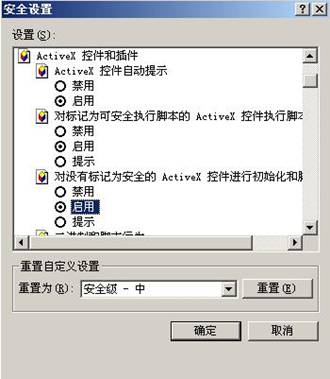 將其中的有關(guān)ActiveX控件和插件的屬性全部設(shè)置為“啟用”。