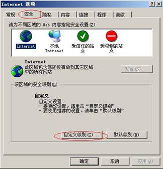 選擇“自定義級(jí)別”按鈕,進(jìn)入到其安全設(shè)置對(duì)話框(對(duì)于不同版本的IE其畫面可能不相同),如下圖所示: