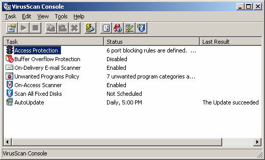 在VirusScan Console中使用鼠標(biāo)雙擊Access Protection項(xiàng),如下所示: