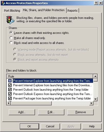 在彈出的對(duì)話框中,選擇“File, Share, and Folder Protetion”頁(yè),如下圖所示: