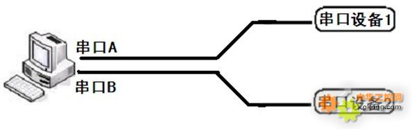 將計算機的串口A接設(shè)備1,串口A的通信波特率設(shè)置為設(shè)備1的波特率、校驗位、數(shù)據(jù)位和停止位。將計算機的串口B接設(shè)備2,串口B的通信波特率設(shè)置為設(shè)備2的波特率、校驗位、數(shù)據(jù)位和停止位。計算機必須至少有兩個RS-232串口,擴展串口可以采用USB-串口轉(zhuǎn)換器等。這樣就實現(xiàn)了串口設(shè)備1與串口設(shè)備2之間的通信。