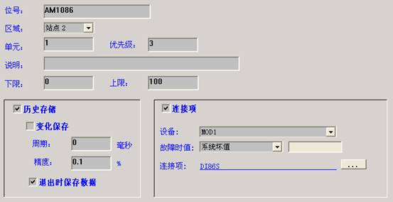 一般的應(yīng)用中只會(huì)涉及到有限的幾種設(shè)備類(lèi)型和幾種點(diǎn)類(lèi)型。對(duì)于每種設(shè)備或點(diǎn)類(lèi)型我們要在畫(huà)面中建立相應(yīng)的窗口,該窗口用于對(duì)I/O設(shè)備或點(diǎn)進(jìn)行維護(hù)。下面是一簡(jiǎn)單的點(diǎn)定義窗口: