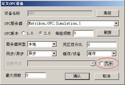 當(dāng)進(jìn)行OPC驅(qū)動(dòng)設(shè)置時(shí),在進(jìn)入OPC設(shè)備定義對(duì)話框后單擊“冗余”選項(xiàng),會(huì)彈出冗余設(shè)置對(duì)話框,如下所示:
