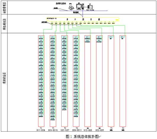 系統(tǒng)主要采用分層分布式計(jì)算機(jī)網(wǎng)絡(luò)結(jié)構(gòu),如圖1所示:站控管理層、網(wǎng)絡(luò)通訊層和現(xiàn)場(chǎng)設(shè)備層[1]。